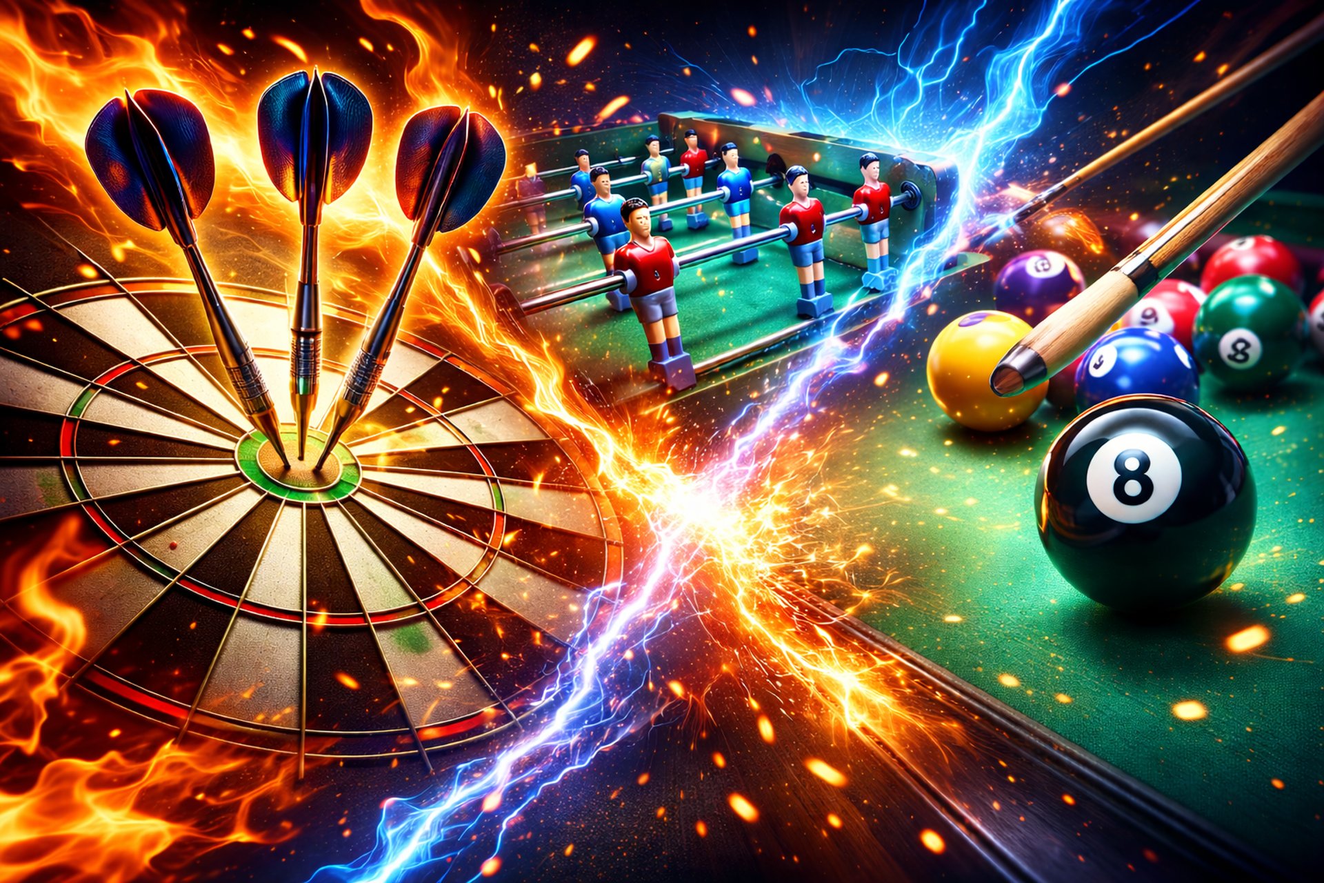 ➽ Nous mettons à disposition des machines à fléchettes électroniques, billards et baby-foot, sélectionnées pour leur fiabilité, leur robustesse et leur attractivité auprès des clients.
